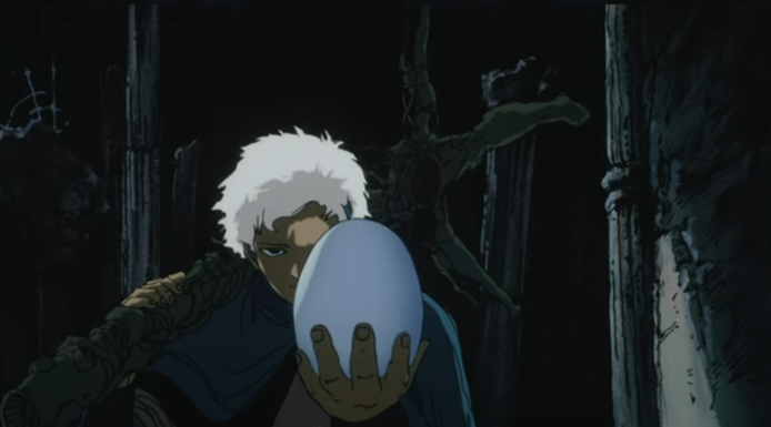 Tenshi no Tamago es una mina de oro para la interpretación. No hay diálogos extensos, la historia se cuenta a través de imágenes, sonidos y los actos repetitivos de sus dos personajes principales: una niña misteriosa que protege un huevo gigante y un hombre con una cruz a cuestas. Los simbolismos religiosos (el arca, el diluvio, la crucifixión, el ojo que todo lo ve), filosóficos (la fe, la pérdida, la búsqueda de significado, la soledad) y algunos existenciales se entrelazan para crear una experiencia profundamente personal. Estos elementos invitan a una profunda reflexión y a múltiples interpretaciones, lo que le da una profundidad diferente, no ligada a la trama. Cada espectador construirá su propia narrativa, su propia comprensión de este enigmático universo.